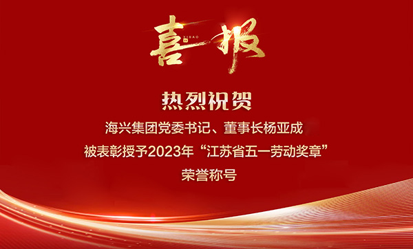 喜報(bào)!熱烈祝賀海興集團(tuán)黨委書記、董事長楊亞成被表彰授予2023年“江蘇省五一勞動獎?wù)隆睒s譽(yù)稱號