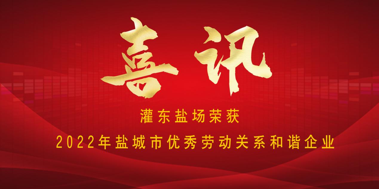 喜訊!灌東鹽場被授予“2022年鹽城市優(yōu)秀勞動關(guān)系和諧企業(yè)”